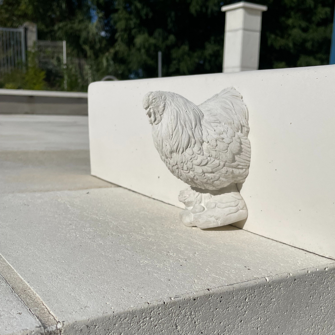 Cette charmante sculpture de poule, façonnée en pierre reconstituée, allie robustesse et finesse de détail. Son rendu réaliste et sa texture soignée en font un élément décoratif idéal pour jardins, terrasses ou intérieurs rustiques. Un clin d’œil élégant à l’univers champêtre, conçu pour durer.