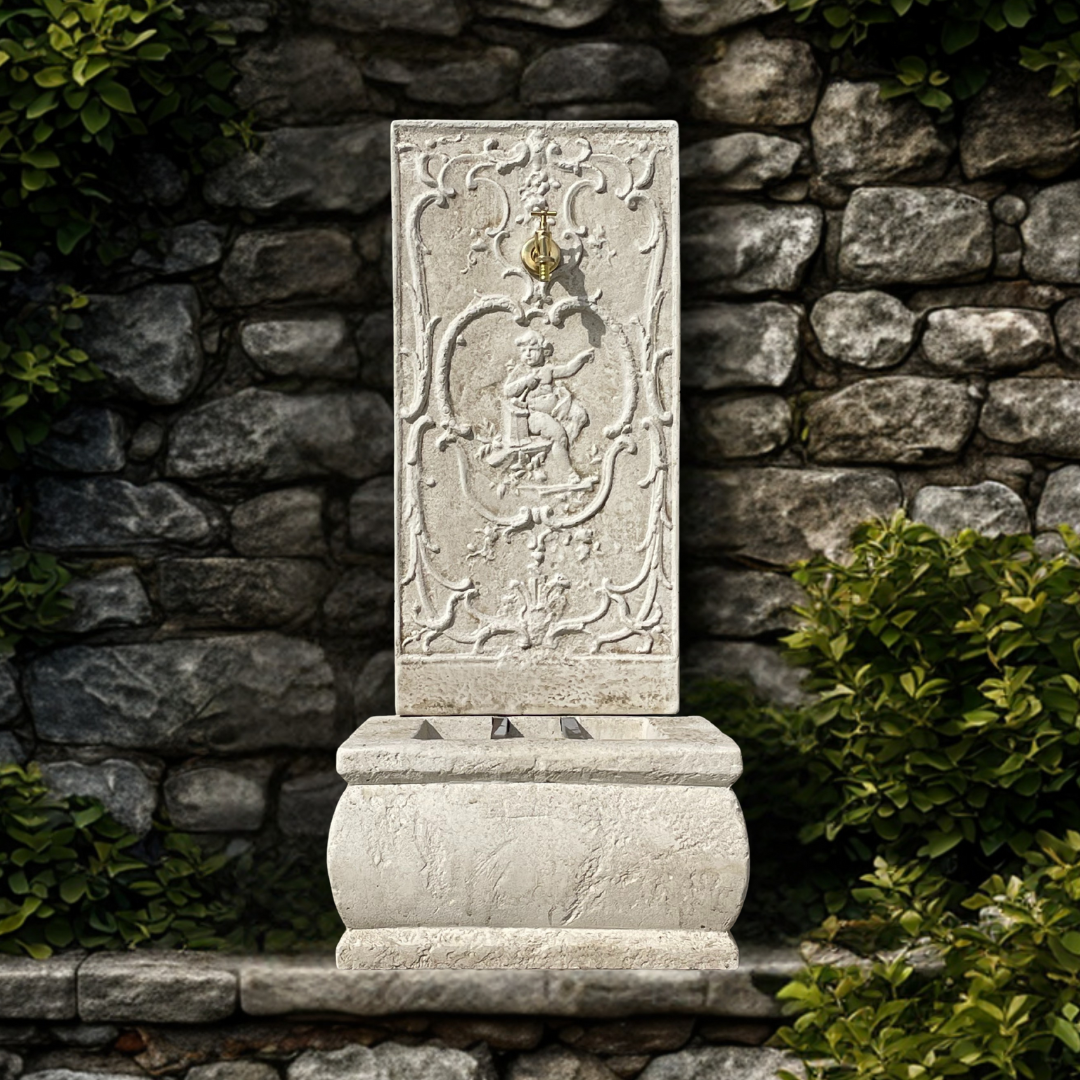 Exemple​ 3 : Fontaine murale Toscane avec un robinet doré coq